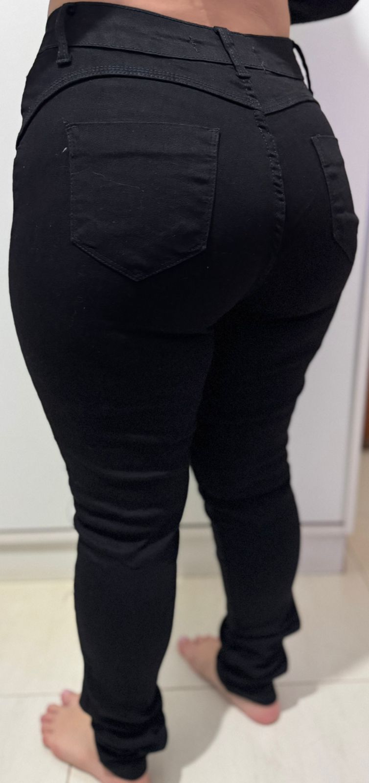 ✔️ Modelagem skinny – ajustada ao corpo do quadril até o tornozelo, valoriza as curvas e alonga a silhueta.